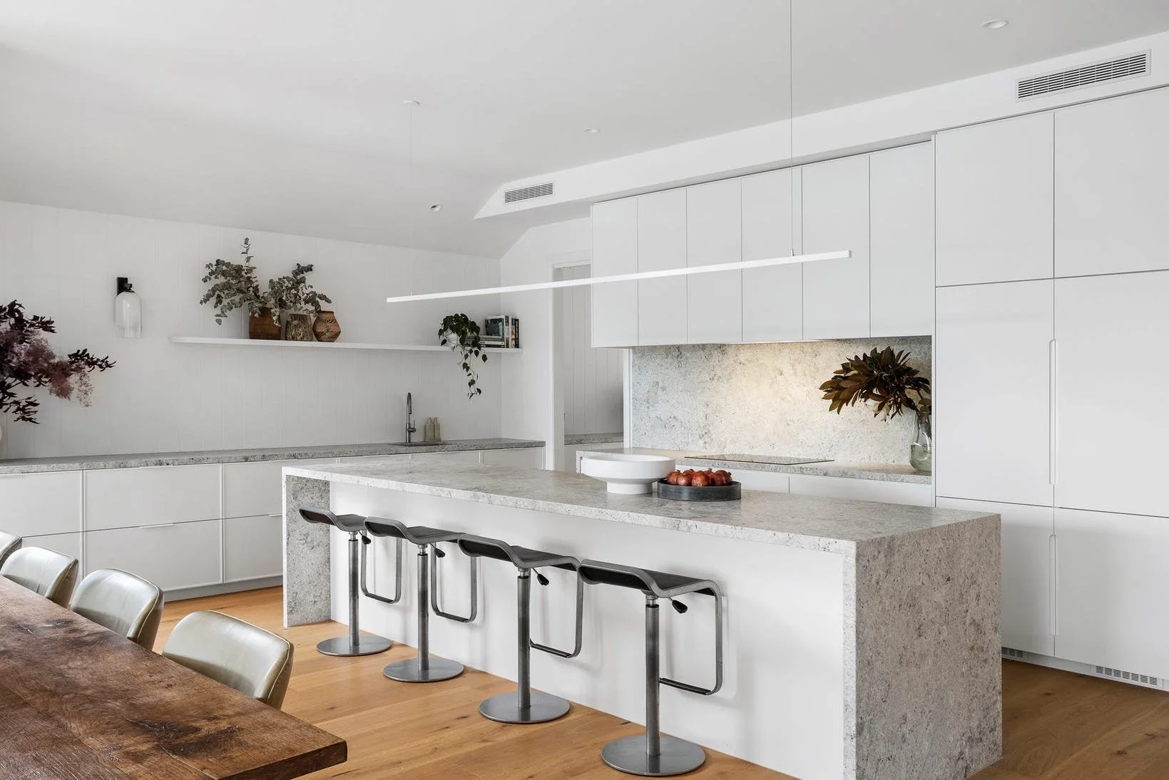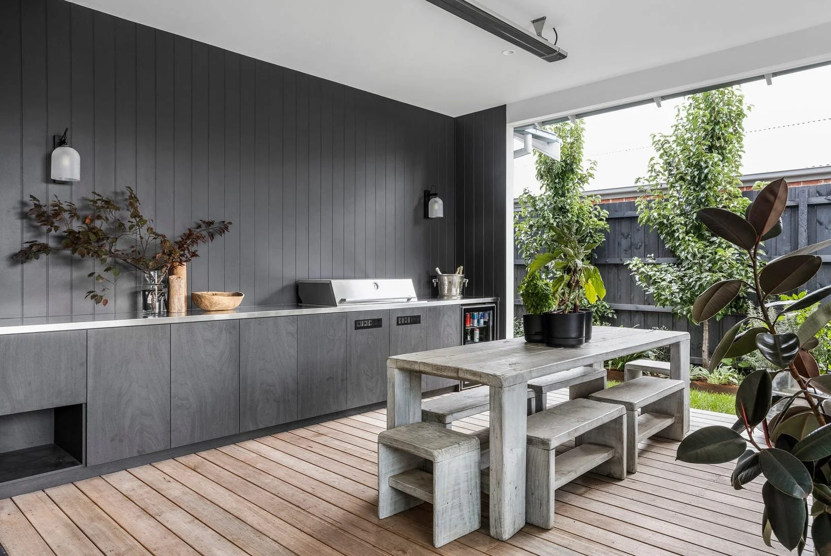 Key deliverables included the kitchen joinery, living room entertainment unit, study storage and workspace, custom wardrobes for all the bedrooms, bathroom vanities, and an inviting outdoor barbecue & entertainment area. The materials and hardware were a combination of Laminex, Polytec and Blum, and custom materials manufactured in-house by ABLE.